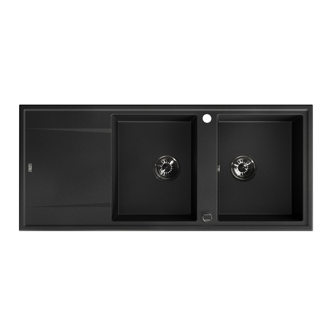 Megalo sink by Laveo is a solution for those seeking 1-bowl granite sink with drainer in standard size. A huge advantage is a capacious bowl with a size of 40x42x17 cm, which will accommodate pots without any problem. The drainer allows for moving of unusual accessories over the sink to improve the process of preparation of meals and washing-up without losing space on the worktop, and a border around the sink will protect the kitchen worktop from spilling water. Also our offer has been extended recently by 2-bowl sink with drainer. This sizeable model of 116x50x185 mm is suitable for a 90cm cabinet. It is doubtlessly a solution for a large kitchen where you love cooking and host guests. A good complement for this model will be a mixer with elastic or pull-out spout which facilitates, e.g. washing of the sink.