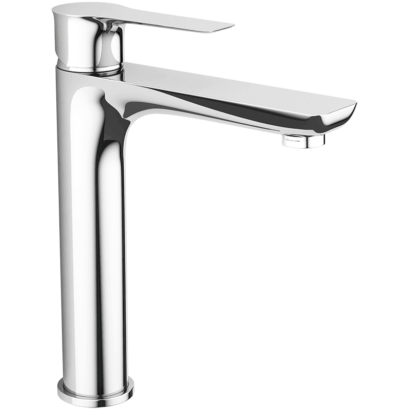 Classic upright mixer has an elegant silhouette and ideal proportions. A mixer with raised body is equipped with a long spout and will go perfectly with a large countertop washbasin. Both models are delivered with click-clack plug included.