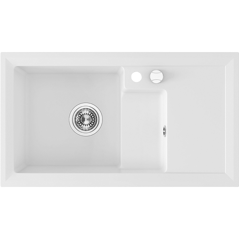 See on 1,5 kausiga valamu, mis on saadaval kahes viimistluses, must ja valge. Komplekti kuulub automaatne pistik, sifoon koos nõudepesumasinaga ühendamisega. Valamul on valmis auk segisti paigaldamiseks.